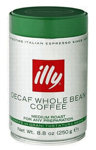 Illy decaffeinated whole coffee beans. 8.8oz can. This is Illy's medium-roasted whole bean coffee, perfect for you to grind at home for maximum freshness and rich coffee taste. Illy uses nothing but Arabica beans, carefully roasting them to a precise point for the desired flavor, in this case, their medium roast--also known as "Normale". Illy prides themselves on their air-free pressurized packaging technology which gives you the freshest coffee possible.
