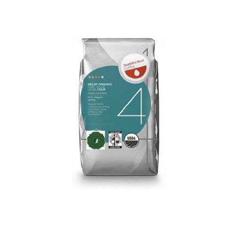 This Swiss water decaffeinated fair trade certified organic coffee is dark with a roasty aroma and deep bold flavor