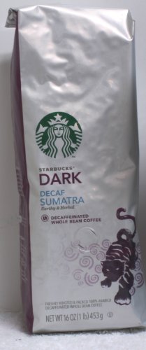 Starbucks Whole Bean Coffee, Decaf Sumatra, 16-Ounce Bags (Pack of 2)